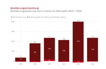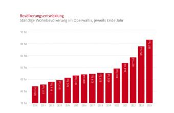 Erneut ist die Bevölkerung in der Region Oberwallis im vergangenen Jahr überdurchschnittlich gewachsen – wenn auch etwas moderater als im Vorjahr. Das zeigen die Zahlen zur Bevölkerungsentwicklung im Jahr 2024. Treiber dieses Trends bleibt die Zuwanderung: Ohne sie würde die Bevölkerung schrumpfen.
