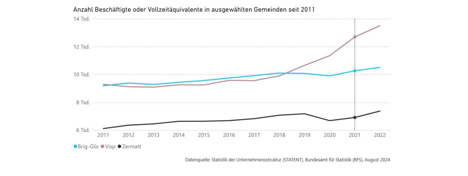Schwenningers und Co. haben dank des anhaltenden Wirtschaftsbooms im Oberwallis Jobmöglichkeiten in der Region und neue Perspektiven erhalten. Geprägt wird diese Entwicklung unter anderem von einer florierenden Lonza mit ihren vielbeachteten Ibex-Neubauten, einer soliden Scintilla, die vom Handwerker-Trend in den westlichen Ländern profitiert, und dem weiterhin bestens aufgestellten Tourismus, der vor allem auch dank dem Evergreen Zermatt jährlich unzählige Menschen anzieht. Neben den Neuzugezogenen sind die zuletzt vermehrt von ausserhalb kommenden Pendlerinnen und Pendler, wie beispielsweise die Frontalieri aus Oberitalien, ein Beleg dafür, dass es wirtschaftlich rund läuft. Arbeitskräfte sind in diesen Zeiten eine begehrte Ressource.
